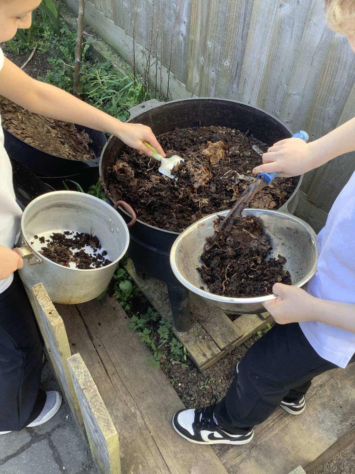 We have also harvested some of our home made vermicompost for use in our allotment. The compost is made largely from vegetable peelings from the kitchen and this, in turn, goes to fertilise things such as garlic and vegetables that are used for our school meals.